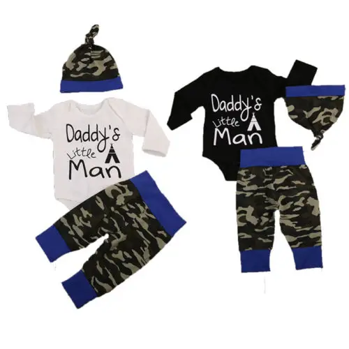 Us 5 03 20 Off 3pcs Suit Boutique Baby Boys Girls Camouflage Clothes Tops Romper Pants Hat Daddy Little Man Outfits Set In Clothing Sets From