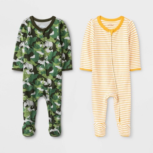 Baby Boys Camo Critter And Striped Pajama Romper Cat Jack Yellow Green Newborn