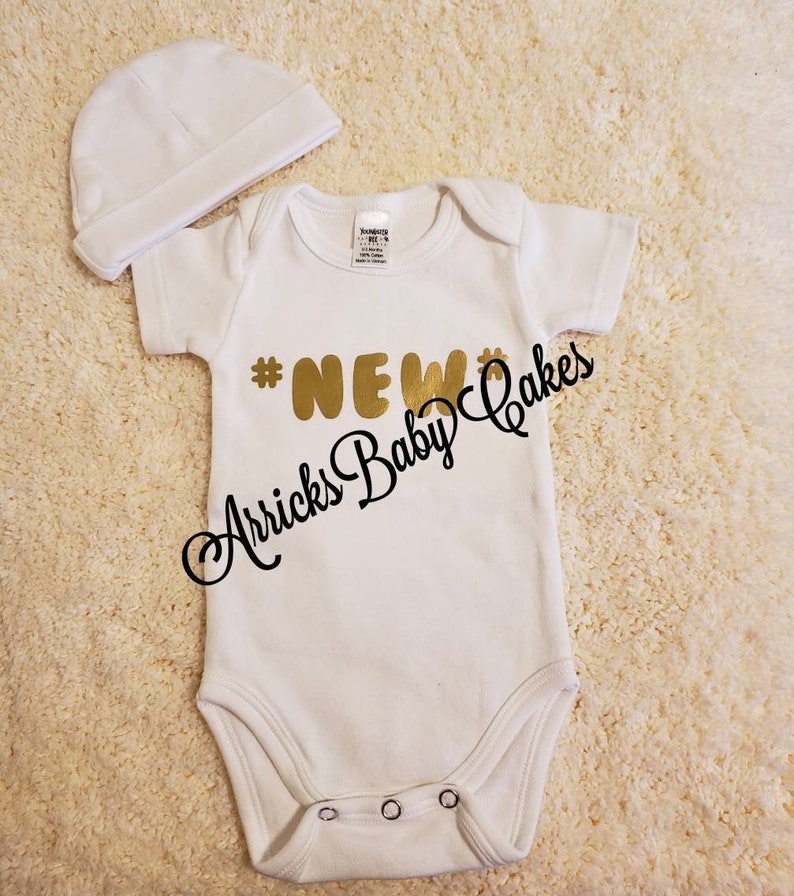 The New Surprise Baby Newborn Bodysuit With Hat By Arricksbabycakes Newborn Baby Gold Letters Unisex Baby Clothes Free Shipping Hashtag