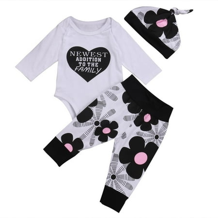 Fufucaillm 3pcs Newborn Baby Boy Girl Clothes Long Sleeve Cotton Tops Romper Pants Hat Outfits Cotton Baby Set Walmart Com