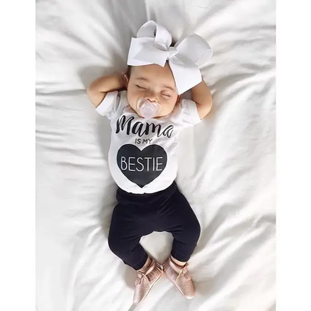 Newborn Baby Girls Clothes 2pcs Funny Saying Bodysuit Romper