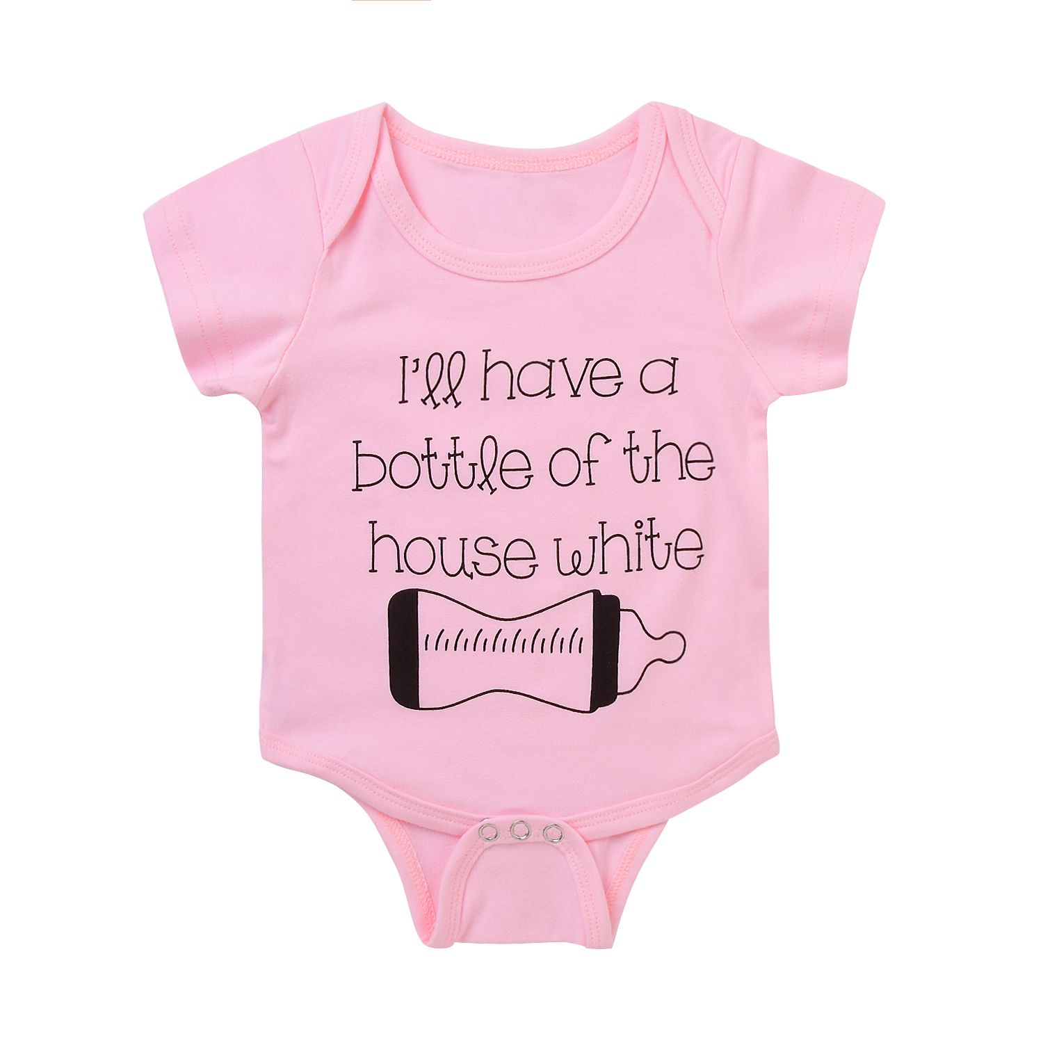 2019 Mikrdoo Baby Funny Rompers Milk Bottle House White Letter Lovable Clothes Newborn Infant Kids Girls Cotton Romper Pink Cute Jumpsuit 0 18m From