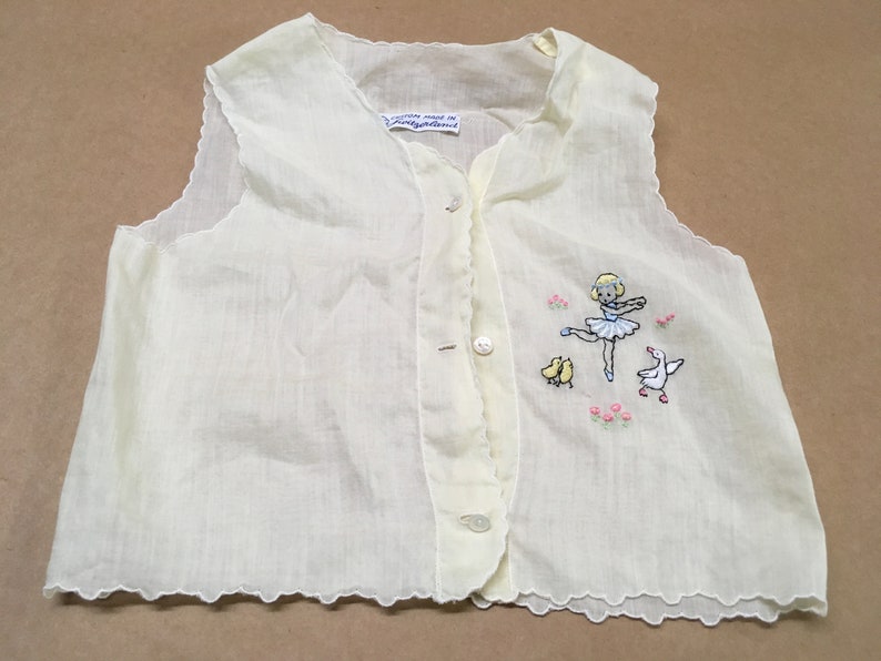 Diaper Shirt Yellow For Newborn Or Baby Doll Embroidered With Ballerina And Ducks Rn Custom Made In Switzerland 1950s Doll Clothes