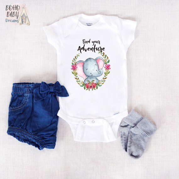 Find Your Adventure Elephant Baby Onesie Boho Baby Clothes Floral Baby Bodysuit Elephant Baby Outfit Baby Shower Gift Newborn Onesie