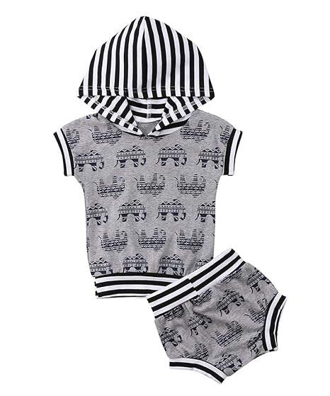 Yannzi Newborn Baby Boy Clothes Elephant Print Hooded Vest Tops Short Pants Sets Summer Outfits 0 24m