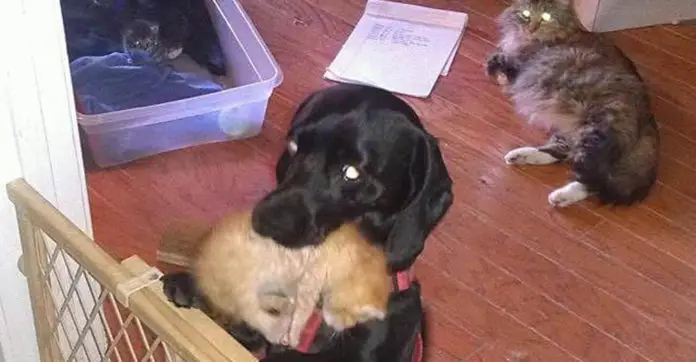 Dog Found Two Orphaned Newborn Kittens And Adopted Them