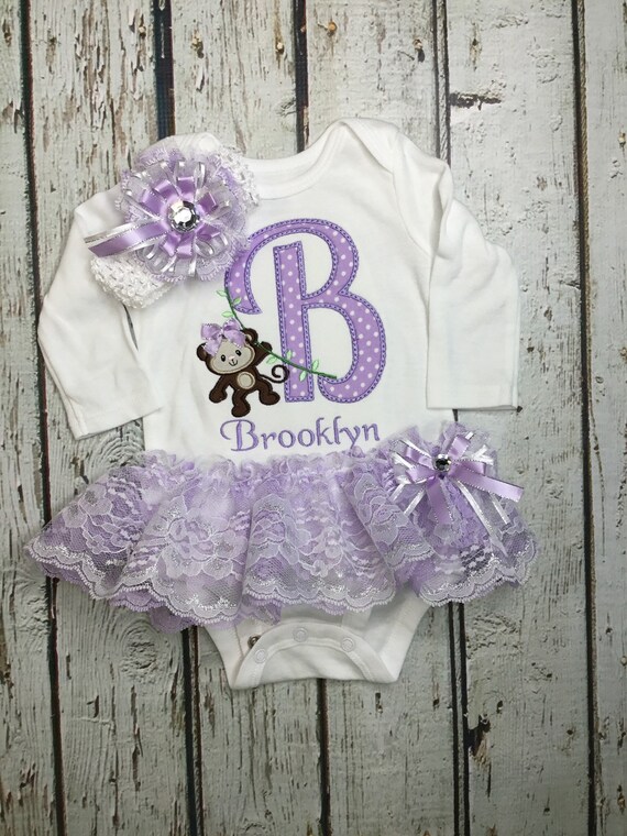 Newborn Baby Girl Monogrammed Bodysuit Appliqued Monkey Baby Girl Lace Tutu Baby Girl Clothes Baby Girl Headband Coming Home Pictures