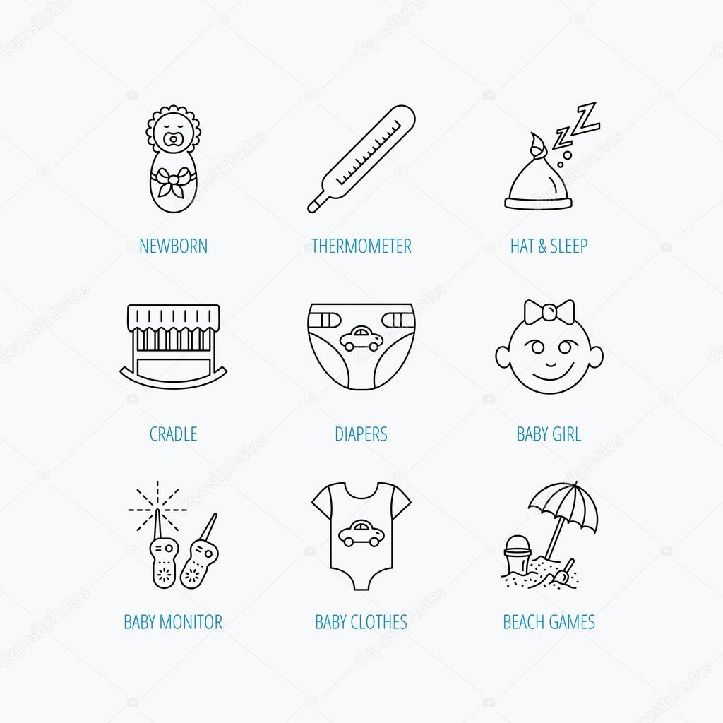 Newborn Clothes Diapers And Sleep Hat Icons Thermometer Baby