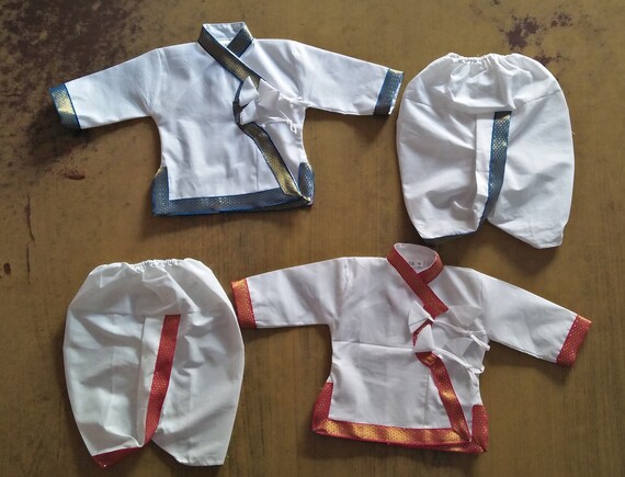 Newborn Dress Indian Baby Wear White Dhoti Kurta Traditional Cotton Angrakha Set Kids Wear Ethnic Dress Lot Of 2 Pcs