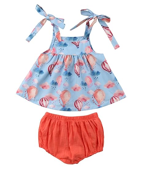 Baby Newborn Girls Summer Clothes Hot Air Balloon Print Suspender Vest Watermelon Red Bloomers 2 Pcs Casual Suit