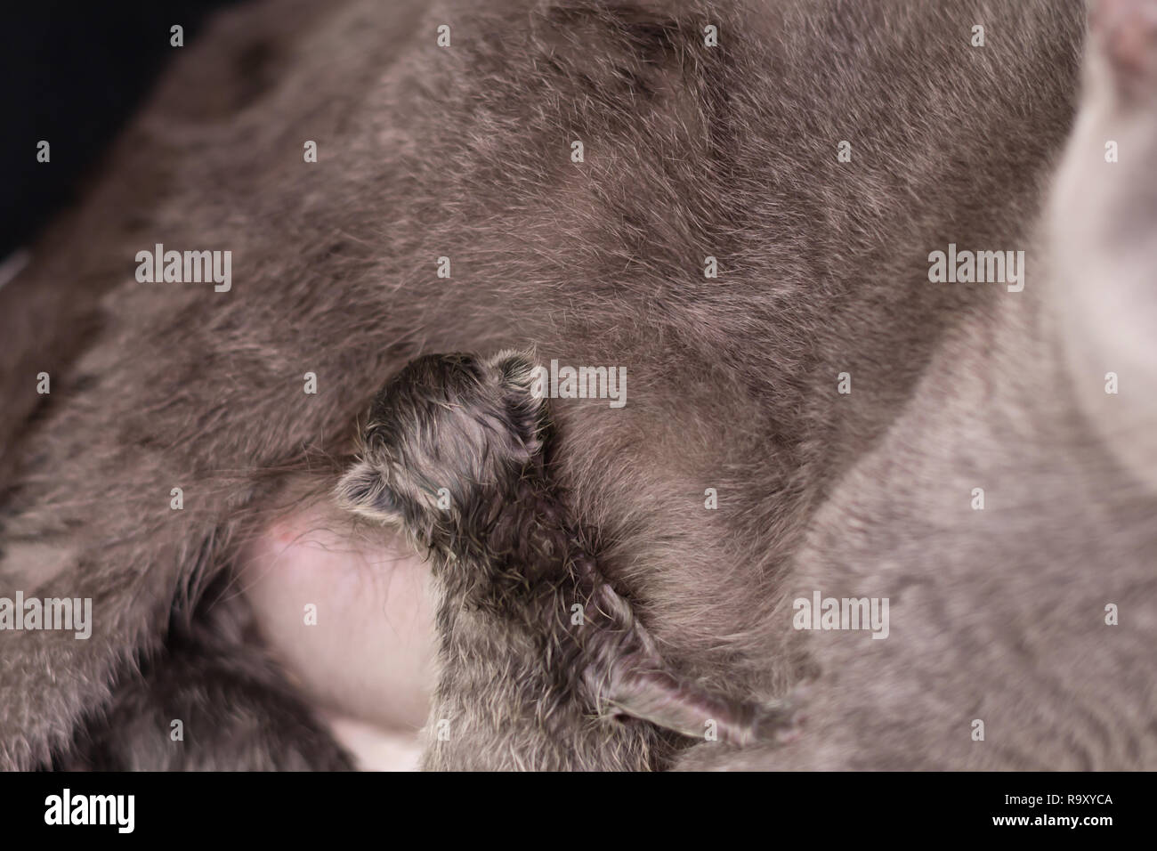 Newborn Kittens Feed On Milk From Their Mother British Shorthair
