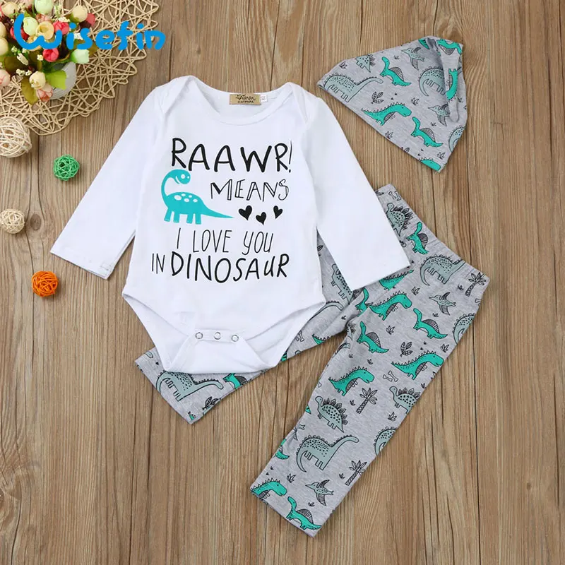 Us 8 99 30 Off Wisefin Newborn Baby Clothes Set With Hat Winter Unisex Dinosaur Print Children Baby Clothing Baby Girl Autumn Clothes For Boy In