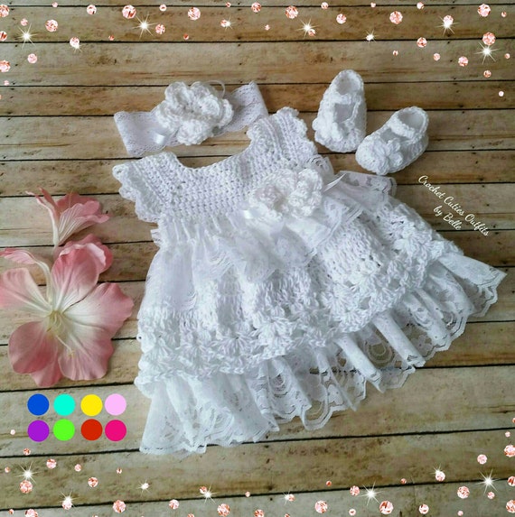 Crochet Baby Dress Full Skirt Baby Blessing Dress