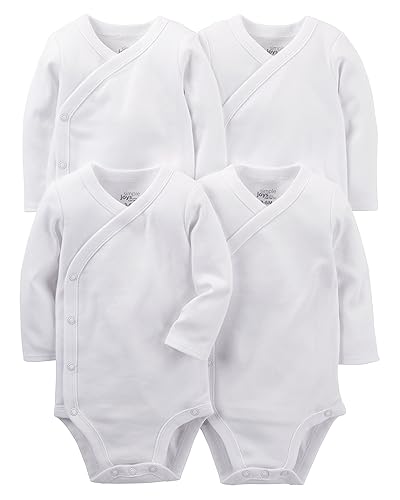 Gerber Baby Organic Cotton 4pk Short Sleeve Side Snap Shirt White 0 3m