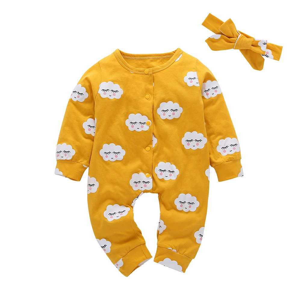 Us 7 49 30 Off 2019 Fashion Baby Boy Girl Clothes Yellow Baby Rompers Long Sleeve Newborn Infant Jumpsuit Cloud Pattern Baby Clothing Outfits In