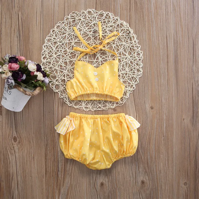 Us 4 01 Newborn Baby Girls Clothing Set Backless Girl Crop Top And Yellow Dot Shorts Kid Baby Girl Sets 0 24m In Clothing Sets From Mother Kids On