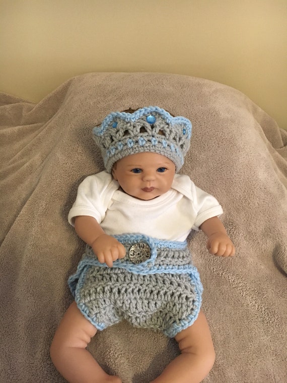 Crochet Baby Boy Crown And Diaper Cover Newborn Boy Crown Photo Props Knit Baby Crown Baby Boy Clothes Baby Boy Shower Gift