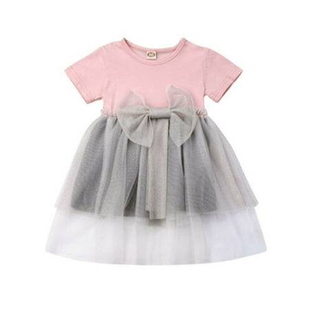 Adorable Newborn Kids Baby Girls Lace Bowknot Dress Short Sleeve Tulle Dress Sundress