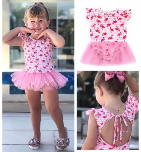 Pink Lace Animal Print Adorable Newborn Baby Girl Flamingo Swimwear Swimsuit Romper Dress Beachwear 1pc Cute Sweet