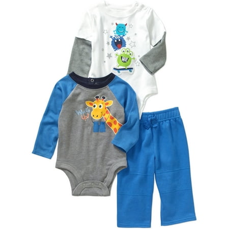 Newborn Baby Boys Hangdown Graphic Bodysuit Raglan Graphic Bodysuit And French Terry Pants 3 Piece Outfit Set