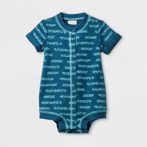 Baby Boys Slub French Terry Button Romper Cat Jack Blue Newborn