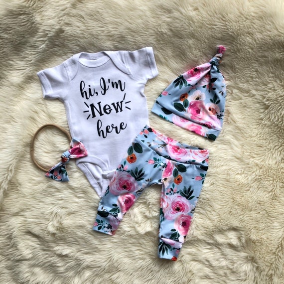 Newborn Baby Outfit Babies Coming Home From The Hospital Leggings Onesie Slouchy Hat Nb Baby Shirt Hi I M New Here