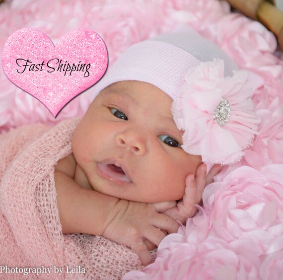 Newborn Hospital Beanie Baby Clothes Bling Baby Beanie Pink Baby Girl Hat Hospital Hat Pink Shabby Flower Beanie Baby Shower Gift