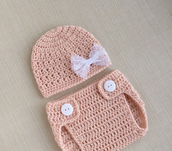0 3 Month Baby Girl Hat And Diaper Cover Set New Born Girl Outfit Crochet Baby Clothes For Pictures Newborn Photo Prop Or Coming Home