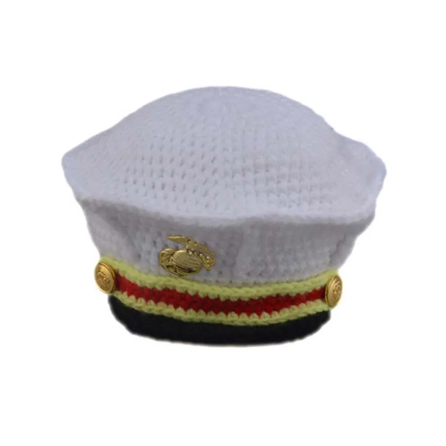 2019 Crochet Marine Corps Newborn Baby Photography Props Knitted Infant Boys Photo Clothing Set Fancy Costume Clothes From Angel 1314 8 32
