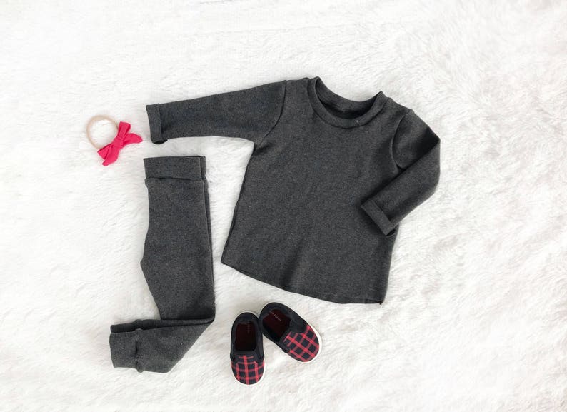 Ribbed Charcoal Gray Kids Clothing Set Unisex Newborn Outfit Unisex Baby Outfit Modern Kids Sets Simple Kids Clothing Modern Baby Clothing