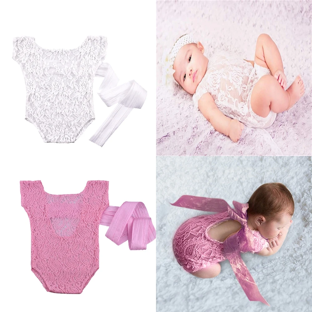 Us 3 43 8 Off Newborn Photography Props Lace Romper Baby Girls Infant Photo Shoot Clothes White Pink Romper In Clothing Sets From Mother Kids On
