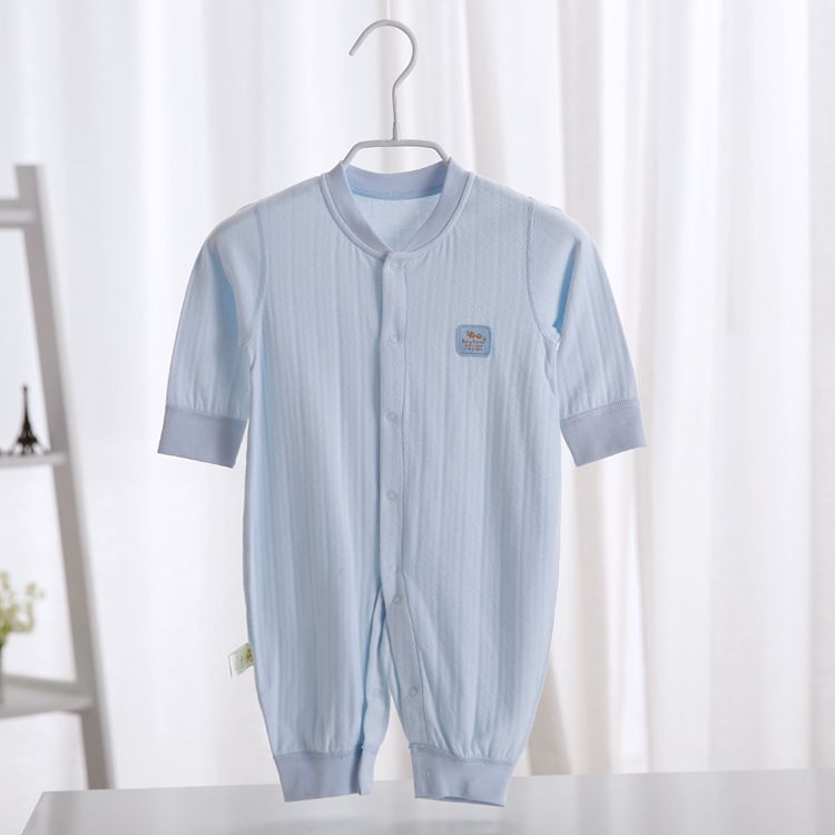 2019 Wholesale Short Sleeve Baby Summer Wear Pajamas Thin Style Newborn Clothes Pure Cotton Soft Comfortable Lapel Overalls Children From Tang6606