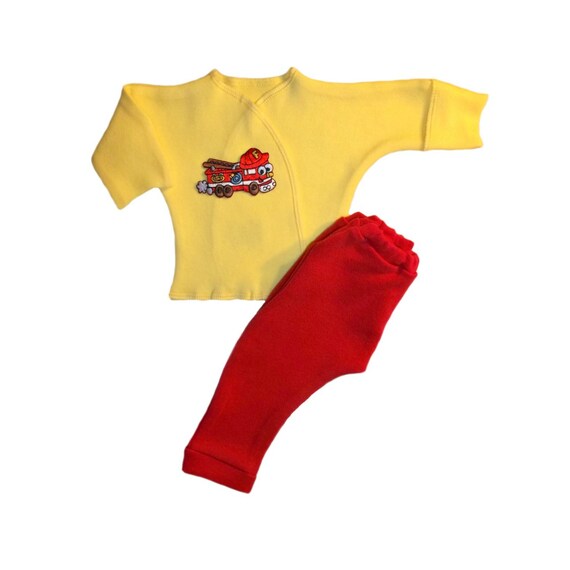Baby Boys Happy Fire Truck 2 Piece Baby Pants And Shirt With Mitten Cuffs Sweet Coming Home Clothing Outfit For Preemie Newborn Babies