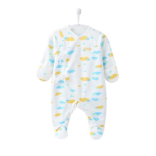 Cobroo 100 Cotton Newborn Footie Pajamas With Mittens Side Belt Infant Footed Sleeper Cozy Warm Baby Outfits 0 6 Months