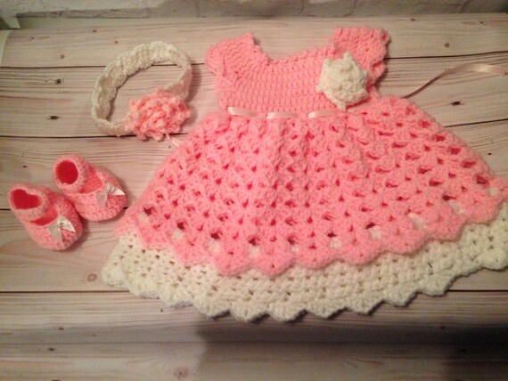 Crochet Baby Dress Set Crochet Newborn Clothes Crochet Dress Headband And Booties Newborn Dress Baby Gift Baby Shower Gift