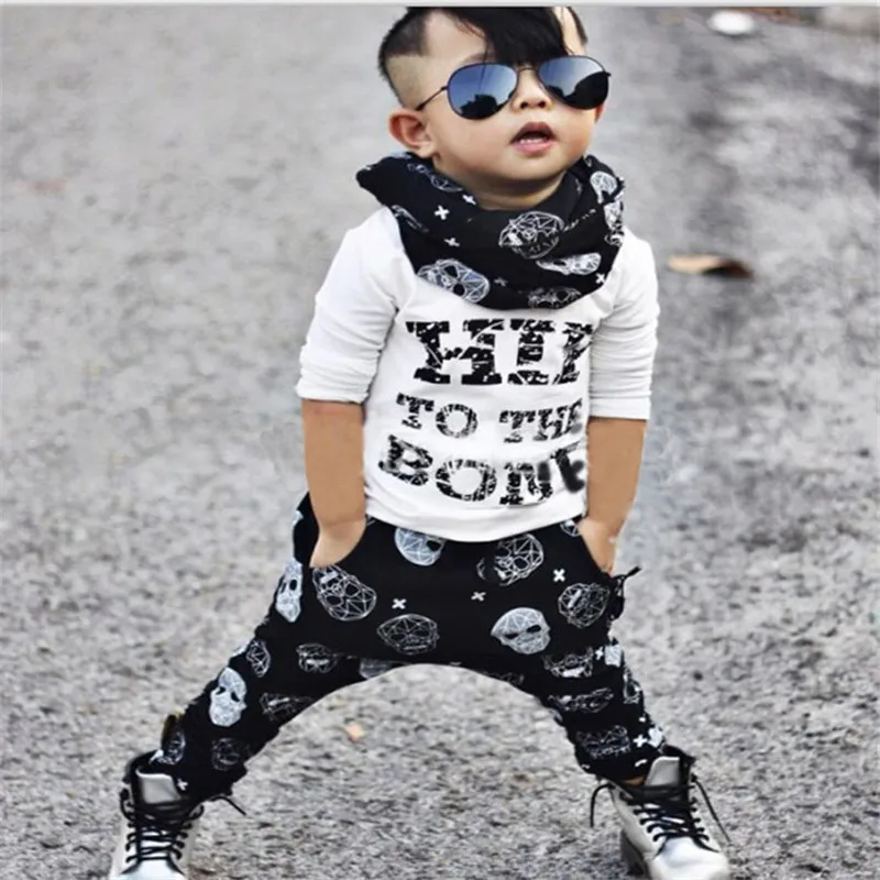Newborn Boys Girls Baby Clothes Sets Jumpers Toddler Fall Skull Print Baby Punk Rock Harlan Pants Motorcycle Clothing