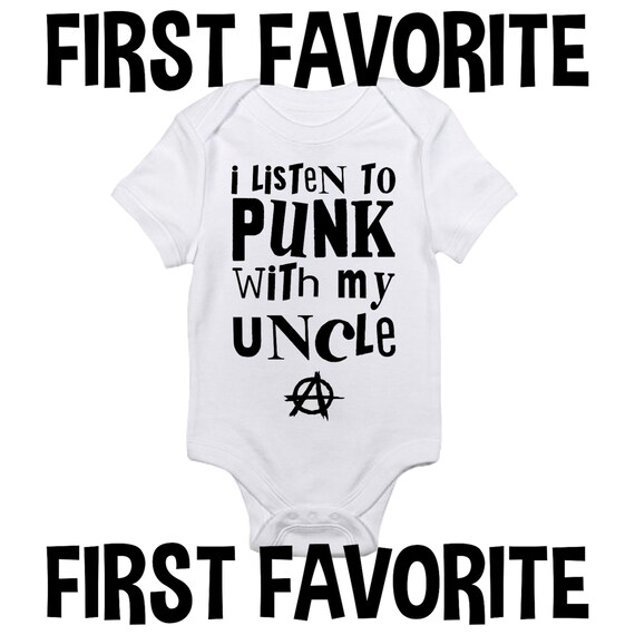 Punk With Uncle Baby Onesie Bodysuit Shirt Pregnancy Announcement Shower Gift Infant Newborn Clothes Outfit Organic Music Funny Cute Unique