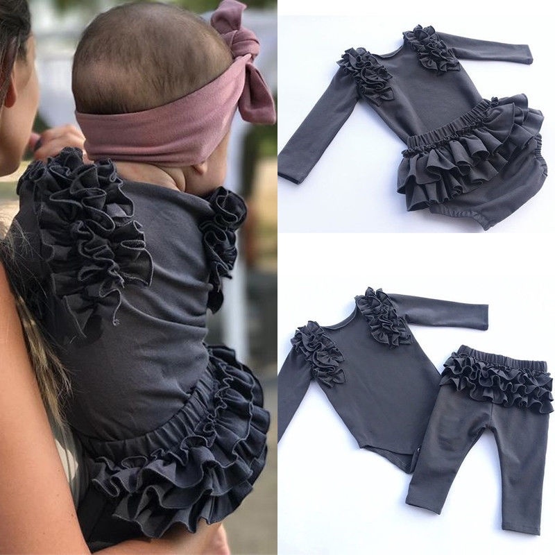 Canis 2pcs Newborn Baby Girls Ruffles Clothes Romper