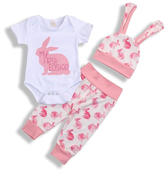 My 1st Easter Newborn Baby Boy Girl Outfits Rabbit Romper Top Cartoon 3d Bunny Ears Hat Cute Pant 3pcs Twins Clothes Set