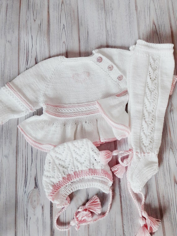 Knitted Baby White Clothes Newborn Girl Cotton Baby Set First Outfit Clothing For Reborn Set Of 3 Units Gift Baby