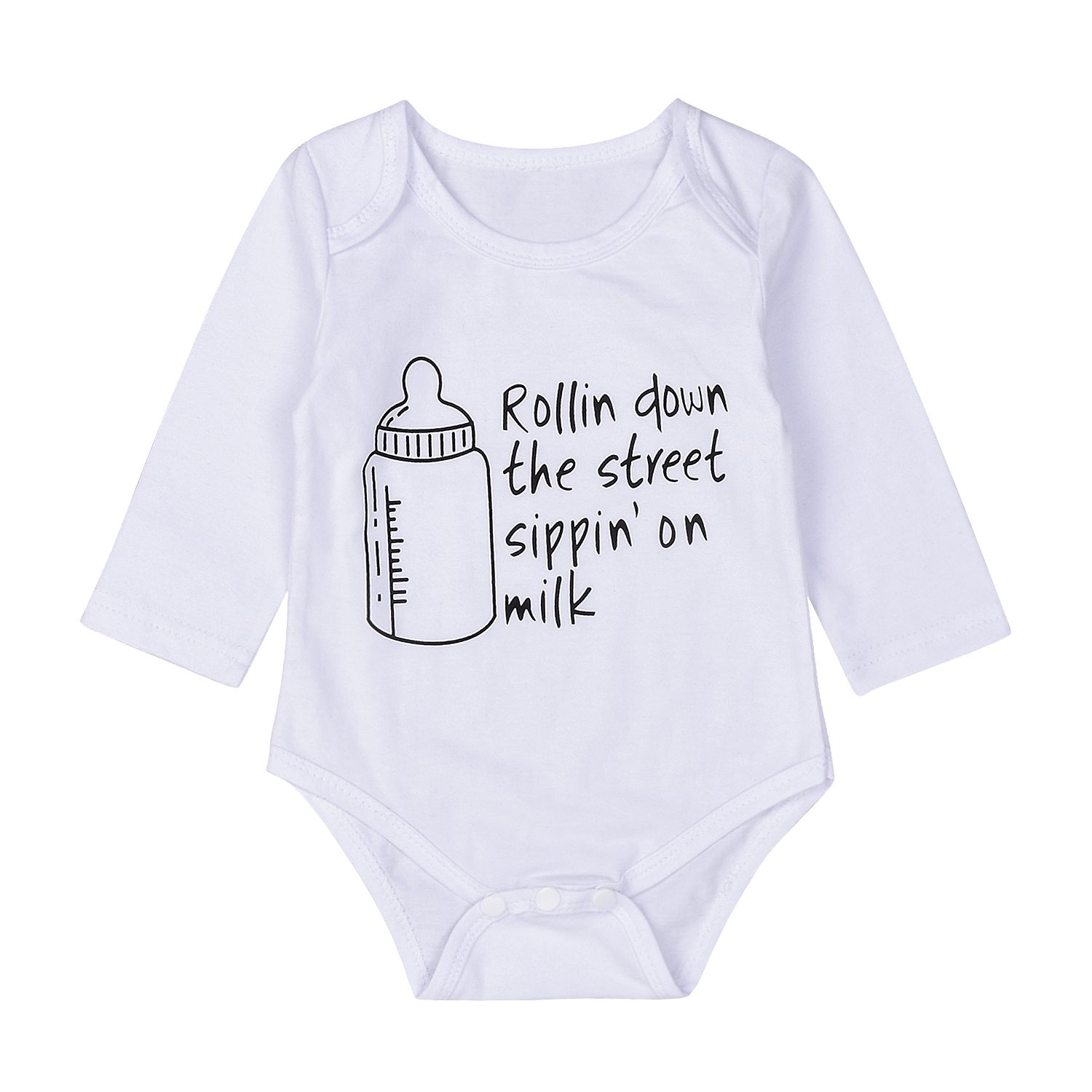 2019 Mikrdoo 2017 Cute Newborn Romper Infant Baby Milk Bottle White Clothes Set Rollin Down Long Sleeves Bodysuit Outfits Sunsuit 0 24m Wholesale From