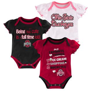 Outerstuff Ohio State Buckeyes Ncaa Baby Girls 3 Piece Creeper Onesie Set