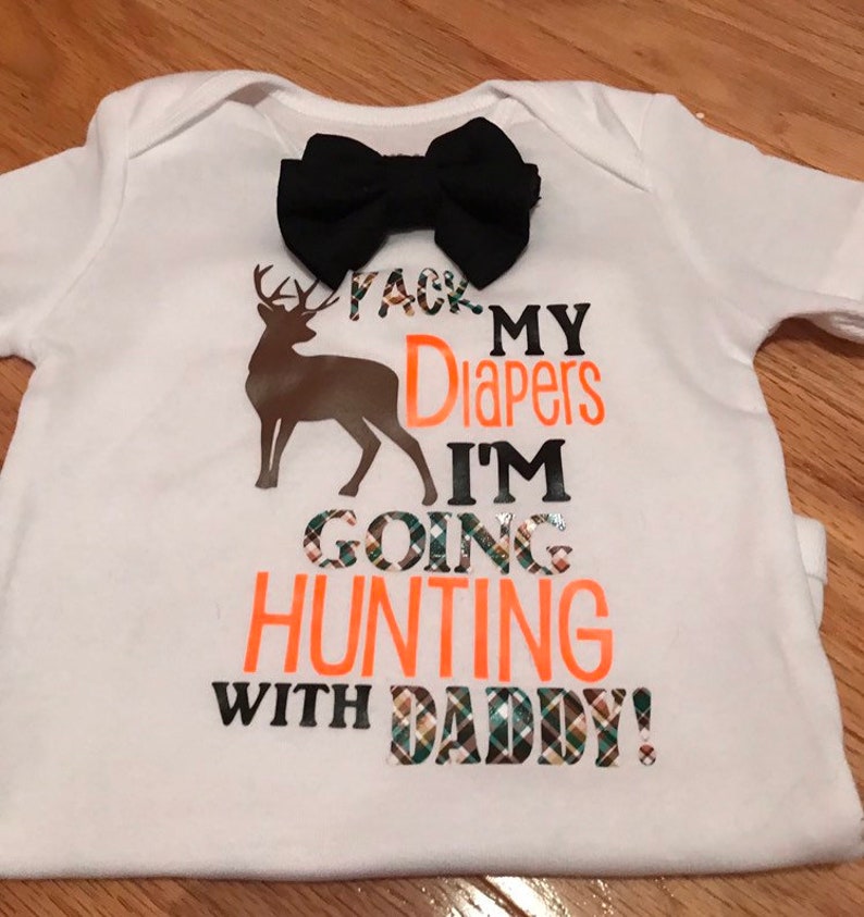 Pack My Diapers I M Going Hunting With Daddy Baby Boy Onesie With Bow Tie