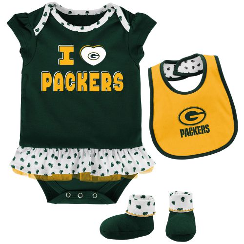 Packers Newborn Team Love Skirted Creeper Bib And Booties Set