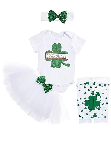 Swnone My 1st St Patrick S Day Baby Girls Clothes Shamrock Rompers Tutu Tulle Skirt And Headband Outfits Set White