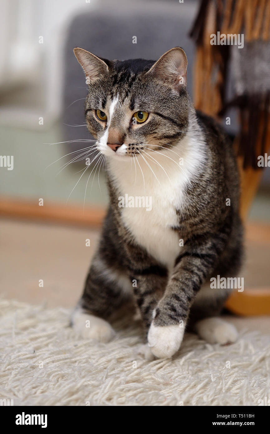 Gray Yellow Eyed Cat Striped Cat Striped Not Purebred