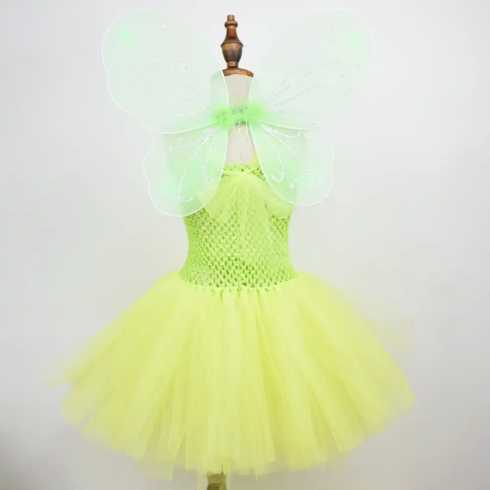 Green Tutu Tinkerbell Toddler Fairy Halloween Costume Baby Girl Dress Up Woodland Forest Pixie Hollow First Birthday Party Outfit Photo Prop