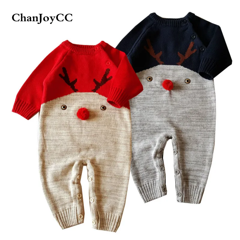 Winter Christmas Elk Newborn Baby Rompers Thickening