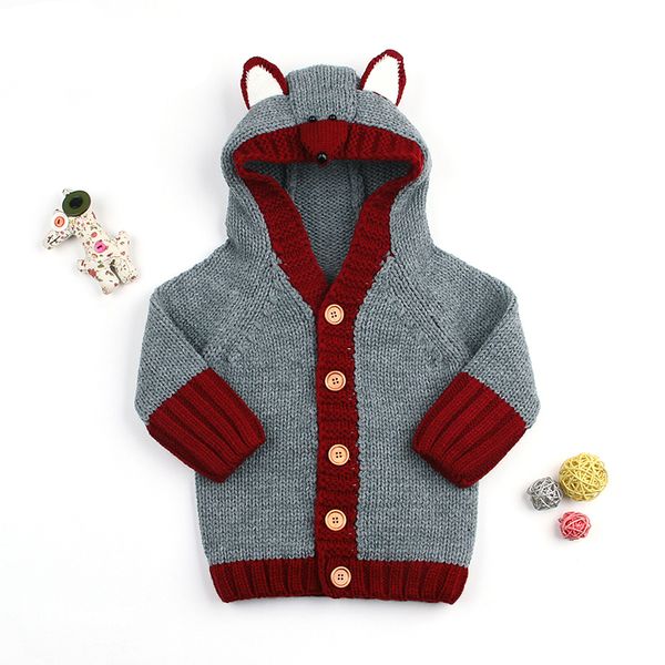 Winter Newborn Boys Sweaters Cardigans Clothes Cute Fox Knitted Baby Girls Knitwear Coats Grey Hooded Infant Jackets Long Sleeve Yellow Toddler