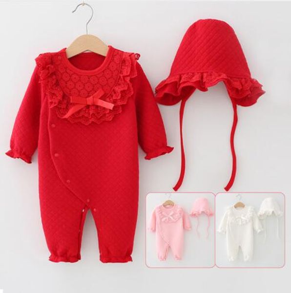 2019 2019 New Winter Newborn Baby Girl Clothes Lace Collar Bow Thicken Jumpsuit Clothing Sets Girls Bodysuit Hats From Zuomeng3821 22 12